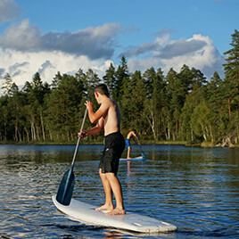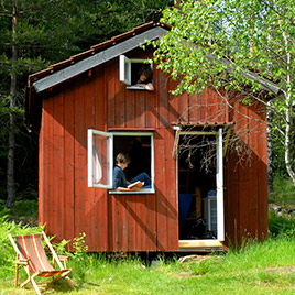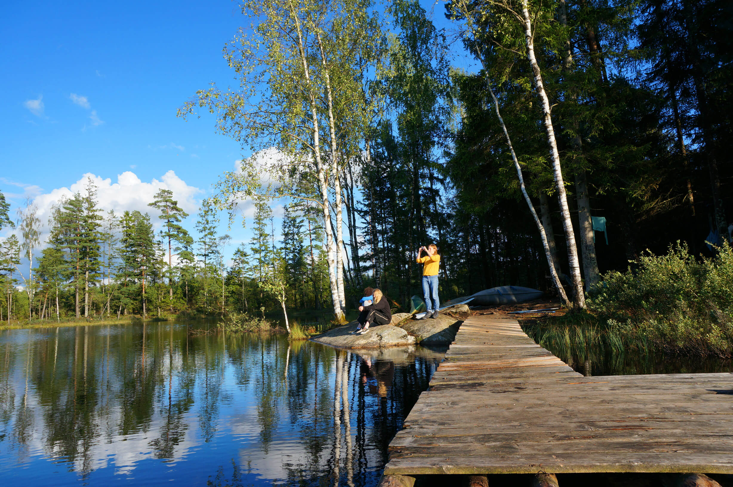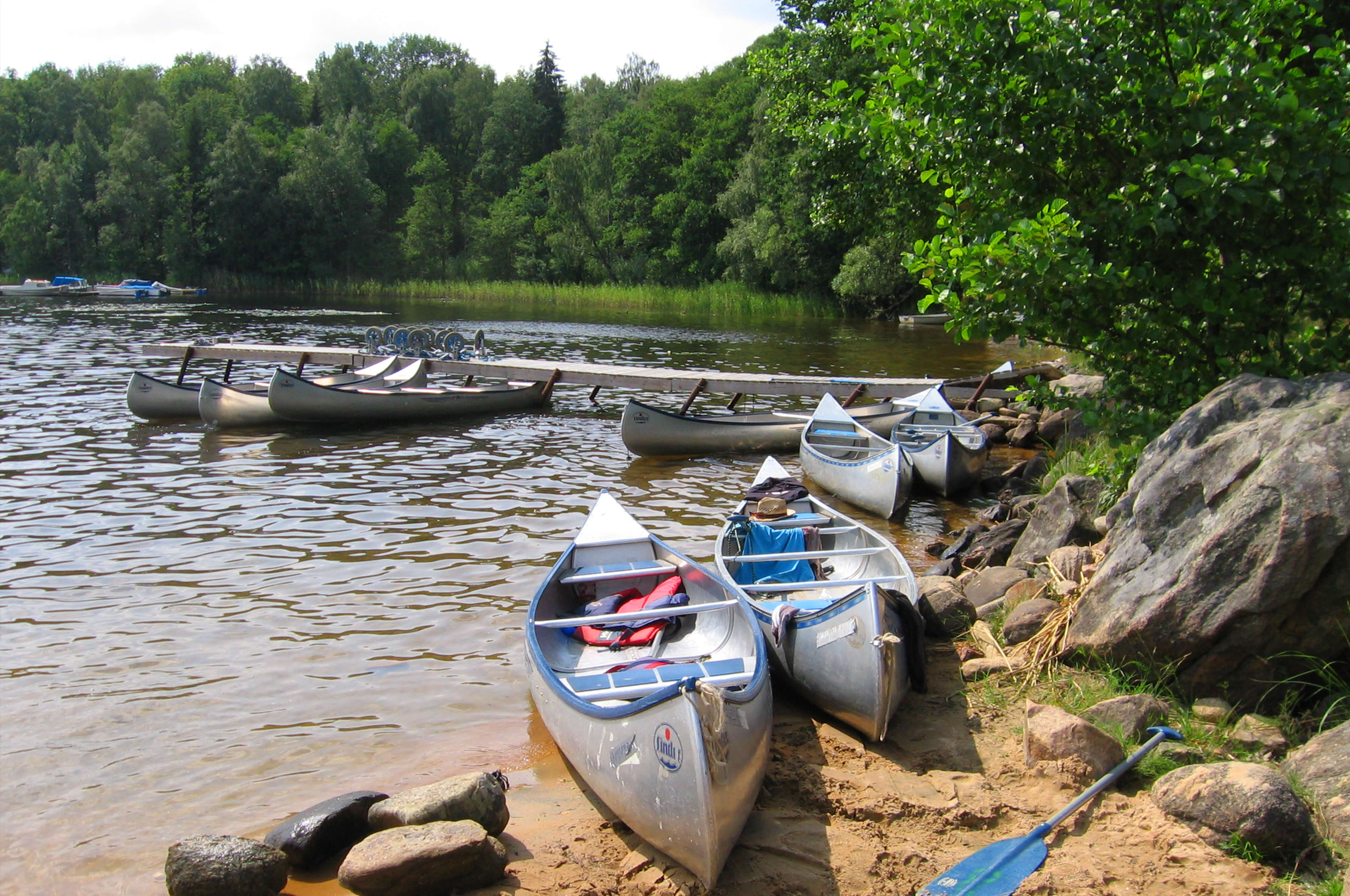 liegt abseits von der Straße mitten in einem riesen Waldgebiet, indem wir auch mal kleinere Bäume fällen dürfen, um Flösse oder Baumhütten daraus zu bauen. In dem eigenen See, der zum Haus gehört, könnt Ihr außer Baden und Angeln auch Eure Kenntnisse im Kanufahren verfeinern, oder einfach nur auf dem Steg in der Sonne chillen. Zu dem 85.000 m²- großen Areal gehören folgende Gebäude, die von den Gruppen genutzt werden können: Im ehemaligen Torp (Baujahr ca. 1890 im Blockhausstil) haben wir heute eine gruppengerechte Küche und den Aufenthaltsraum. Für die Übernachtung stehen der Gruppe 4 Stugas mit insgesamt 32-36 Schlafplätzen zur Verfügung, ein Sanitärgebäude mit Duschen und Toiletten sowie eine finnische Holzofensauna für 6 Personen, die direkt am Haussee liegt.